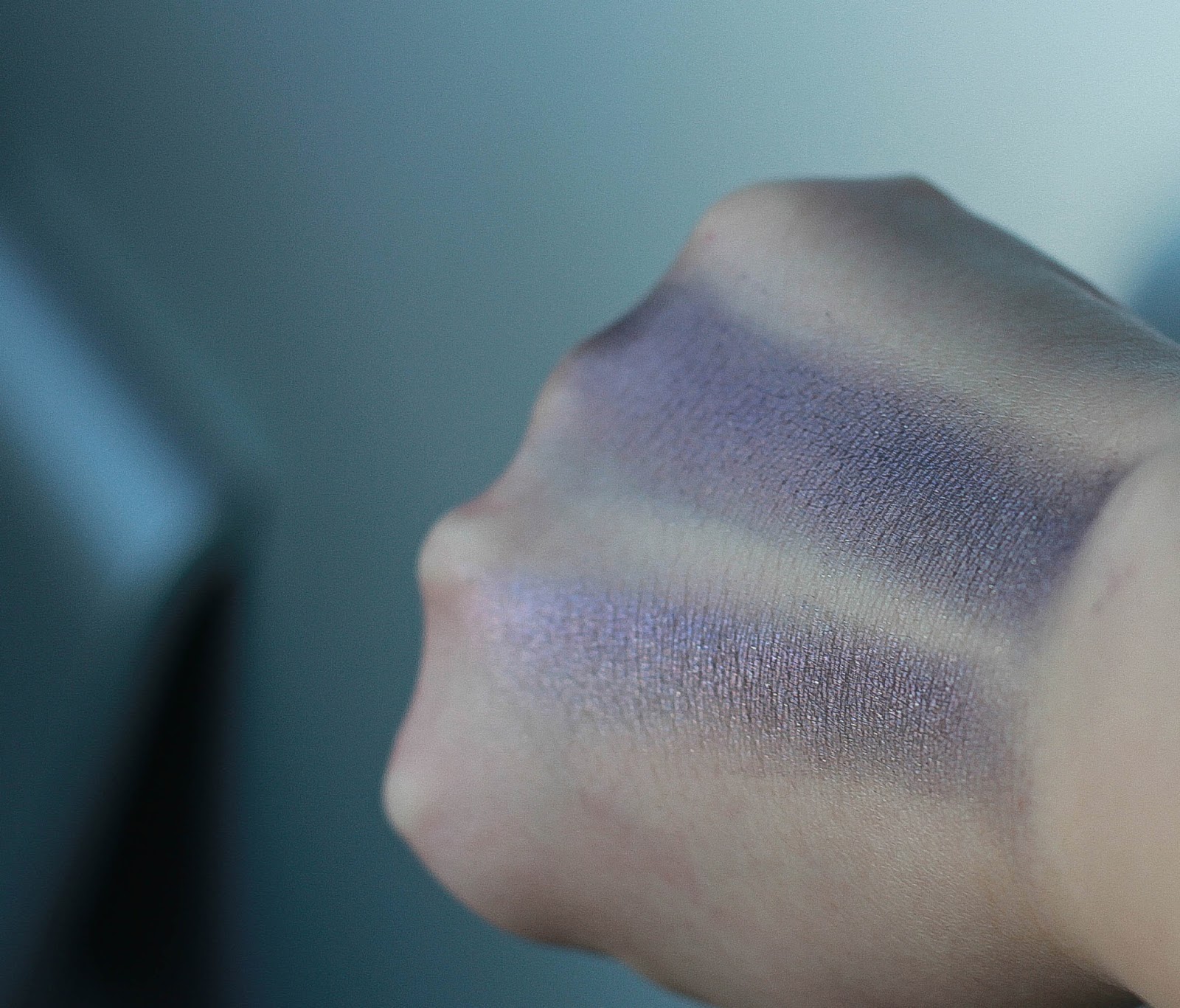При нанесении Chanel Illusoire больше уходит в серый с серебряным финишем, Armani остается фиолетово-лиловым.