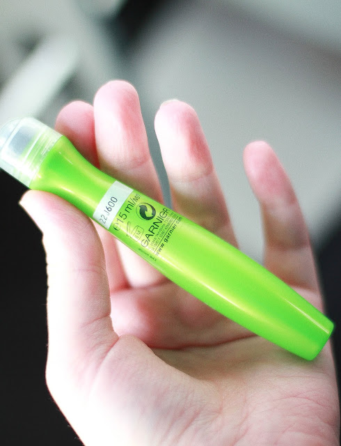 По утрам иногда у меня возникает проблема опухших глаз. В утренней спешке у меня нет времени на то, чтобы отечность ушла сама, и вот уже месяца три мне помогает кофеиновый ролик от Garnier.