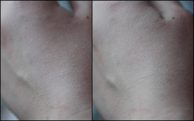 Здесь на фото слева я только нанесла пудру полоской и не растирала,